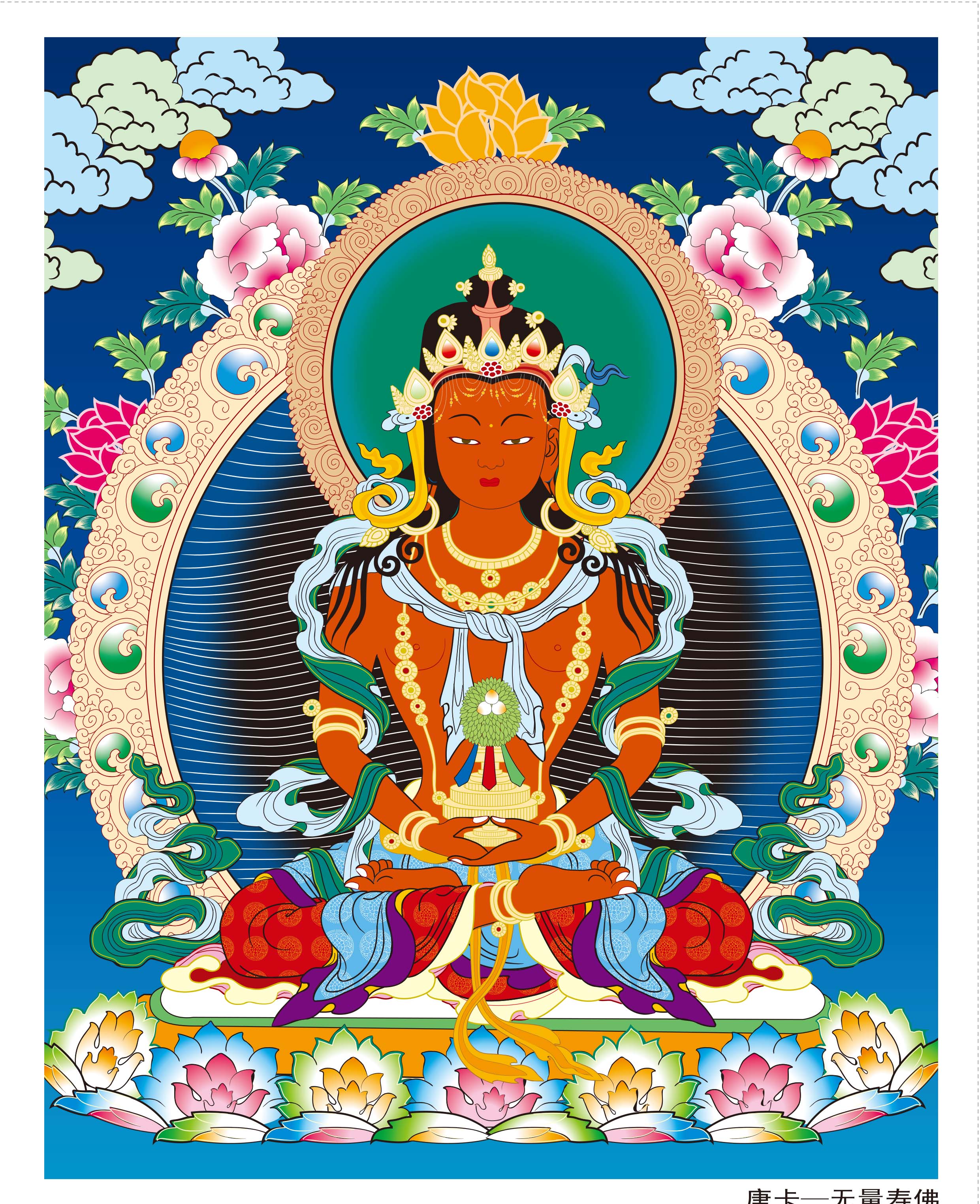唐卡中色彩常被作为表现神佛容貌、性格的一种手段,不同的色彩表现出不同的含义,因此常以白色表现平静、和蔼、善良;红色和深蓝色表现强悍好斗、凶猛狰狞(愤怒相),出巧妙地把大块的红色、绿色、青色和蓝色并列使用;金色代表多种颜色,表现出一种神圣的气氛。