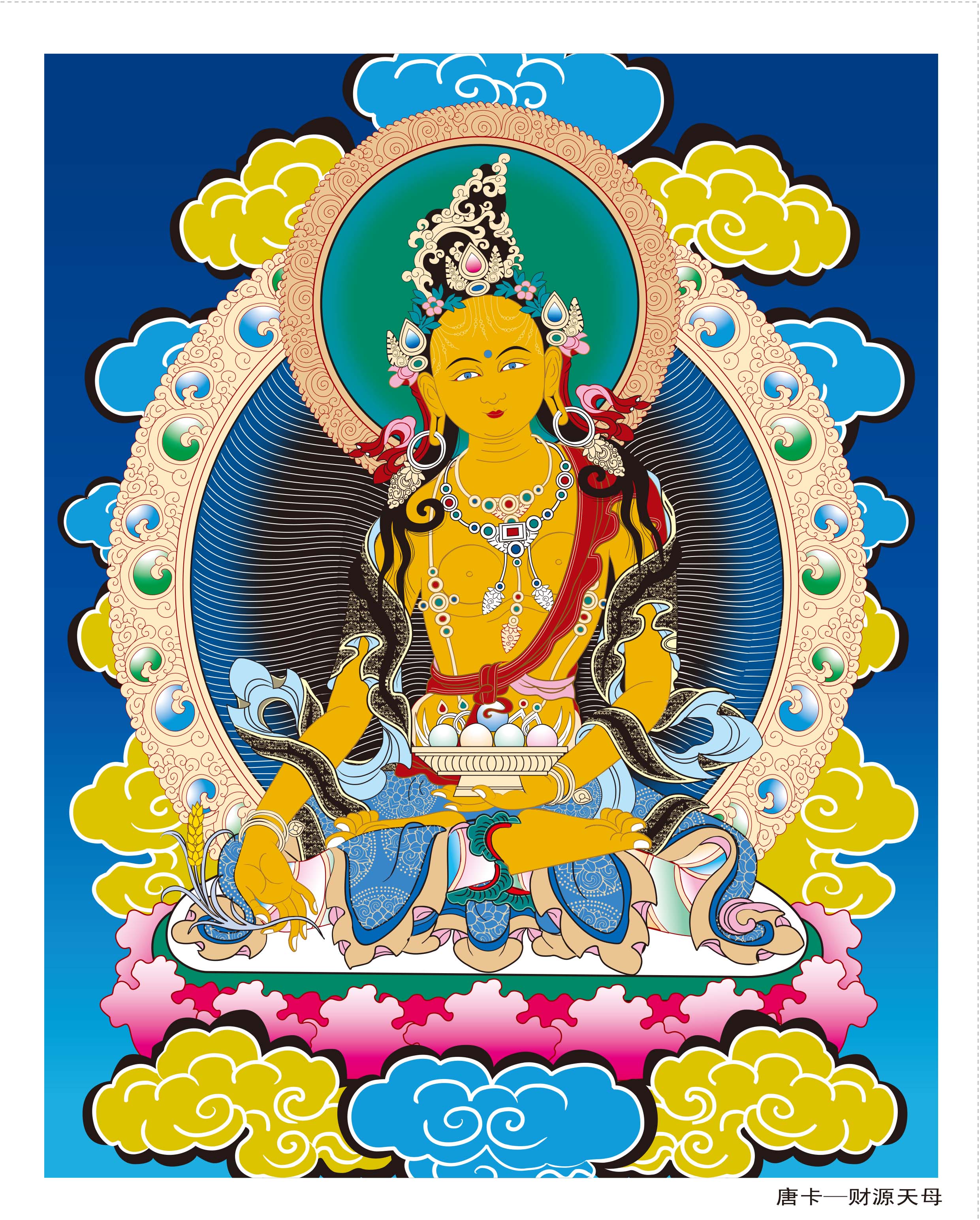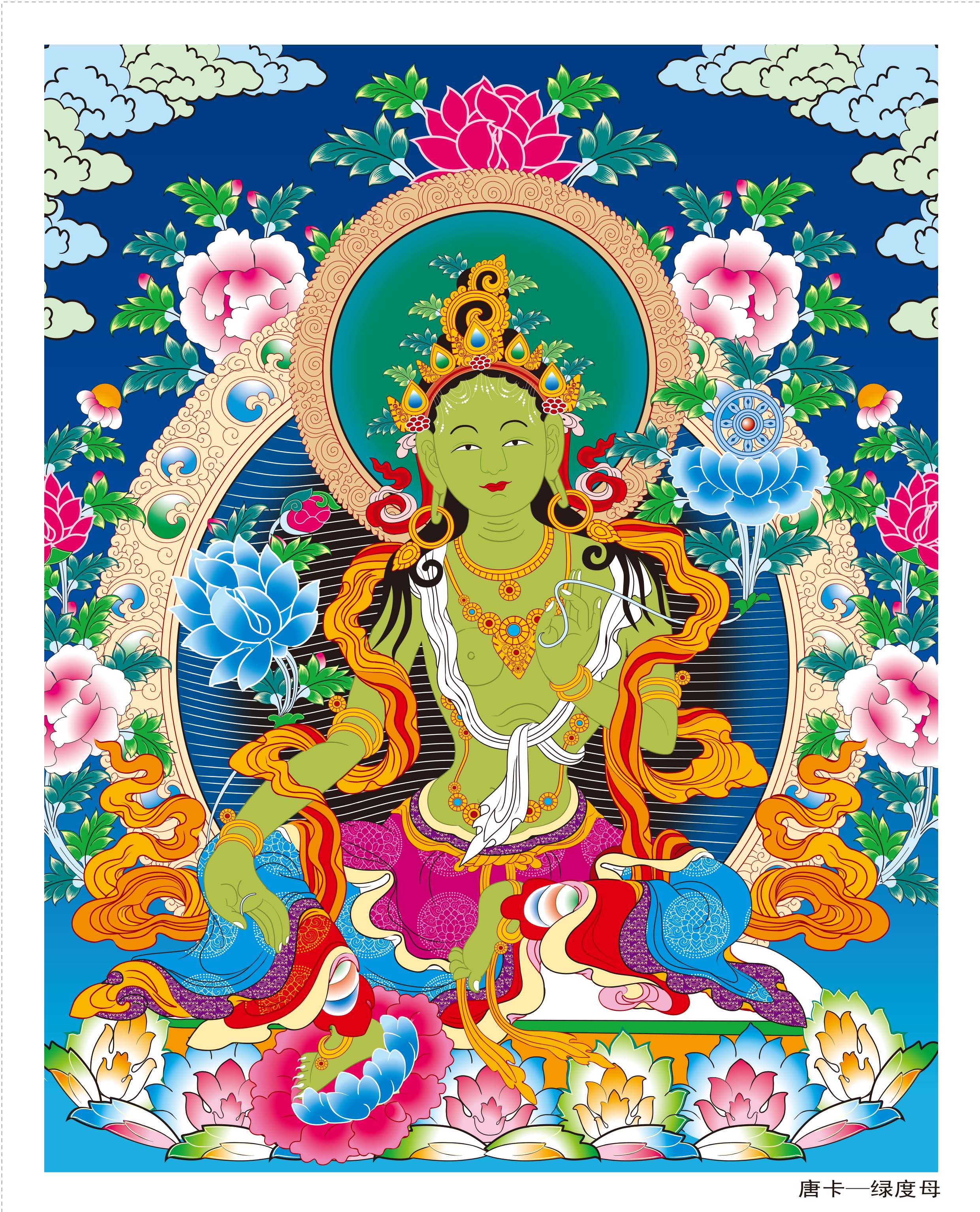 藏族传统绘画技法讲究用线条描绘形状, 用颜色来表现其面貌。就线描与颜色之间的关系而论, 藏族画家有这样的比喻“: 形态虽佳着色差, 如同美女着褴褛, 难现婀娜娇美体; 形劣色佳不足取,如同八旬涂脂粉, 难能打动贤者心。”这段话比较形象地总结出了形态和颜色之间的紧密关系。