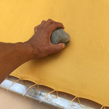 首先在画布上涂上薄薄一层胶水作为“底色”,然后晾干。涂淡胶的目的是防止画布吸附,渗入颜料;防止颜料在画布上“变花”,使颜料涂上面布对不会失掉本色。此后,再薄涂一层有石灰的浆糊。等第二层涂料干后把画布铺到木板或桌面之类的平坦地方,用一块玻璃或贝壳、圆石等光滑的东西反复摩擦画布面,一直到画布的布纹看不见时为止。