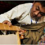 画布一般是浅色画布,不要太厚太硬,画布太厚太硬容易使颜料剥落和皱裂。最合适的画布是织工细密的纯白府绸或棉布,没有图案的白丝绸做画布也非常合适。有的唐卡尺幅很大,只能把几块画布用非常细密的针脚缝合在一起,缝好的两块布的接缝不能有碍于唐卡画面的完整。