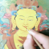 开眉眼包括画眼睛、嘴唇、鼻孔、手足指甲等,是唐卡绘制过程中最后一道工序,也是最重要的一步,一幅唐卡的成败,往往取决于眉眼开得是否成功。所以部分老艺人将开眉眼的功夫当作绝技,单脉相传,不轻易示人。按传统习俗,开眼要选良辰吉日。开好眉眼,就能起到画龙点睛的作用,同时预示着一幅唐卡的最终竣工。